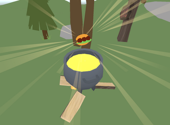 Take ingredients to the cauldron to makes sandwiches. Click on the cauldron to cook!